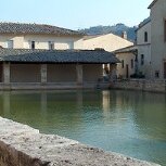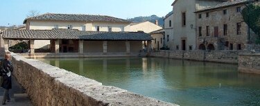 Etruschi e romani frequentavano anche Bagno Vignoni, il delizioso borgo della Val d’Orcia noto per la splendida “Piazza delle sorgenti”, una grande piscina termale che raccoglie le acque che sgorgano da mille metri di profondità a circa 52 gradi. La vasca sorge nel cuore del paese e di notte avvolge in una suggestiva coltre di vapore tutto il centro storico. Già nel Medioevo Bagno Vignoni era famoso in tutta Europa, qui vennero a curarsi anche Lorenzo de’ Medici e Santa Caterina da Siena.