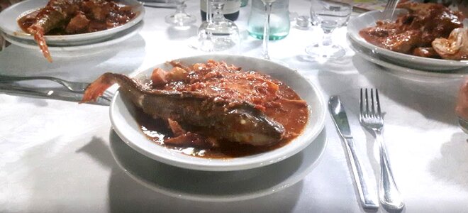 Segni particolari: tutto pesce, tra gli antipasti una menzione particolare va al crudo, insieme al crostone con il cacciucco, indimenticabile il risotto al nero di seppia, ma ottimi anche I paccheri alle vongole pelose, tra i secondi la frittura di paranza, le alici alla piastra, le acciughine e il baccalà fritto e marinato. Si conclude con il classico “ponce” alla livornese.