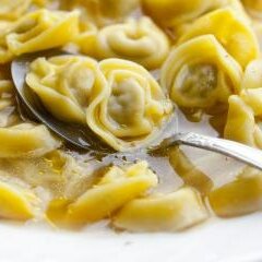 I tortellini sono una tradizione di Bologna, non della Toscana, dove in passato si sarebbero probabilmente serviti i tagliolini o un'altra pasta corta fatta a mano.