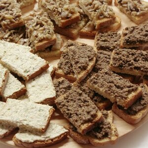Un menù tipicamente e prettamente toscano per il giorno di Natale avrà come prima portata i classici crostini di fegatelli, rivisitati con variazioni sul tema a seconda delle ricette di famiglia, come ad esempio un paté puro di fegatini di pollo o un mix di fegatini, milza ed altro.