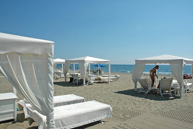 Ma diamo un’occhiata più da vicino al litorale costiero che caratterizza la bellezza della Versilia, una lunga - ed altrettanto larga - striscia di sabbia che ne congiunge le estremità, partendo da nord, dove troviamo Forte dei Marmi, fino ad arrivare a Viareggio, situato all’estremità opposta. In questo tratto di costa si susseguono una molteplice quantità di stabilimenti balneari, i quali hanno completamente - o quasi - privatizzato il litorale costiero. Vi se ne possono trovare di tutti i tipi: dai più semplici, dotati comunque di bar e tavola calda, dove si possono affittare - per un solo giorno, per una o più settimane, per un mese o addirittura per tutta la stagione - ombrelloni, sdraio, lettini e all’occorrenza, le cabine in cui riporre le proprie cose. Altri, invece, sono dotati persino di piscina con acqua salata, dove vengono organizzati corsi di acqua fitness o di nuoto per bambini, parco giochi per i più piccoli, animazione inclusa nel prezzo, ristoranti aperti anche a chi non è cliente e molto altro ancora.