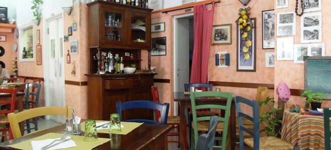 Segni particolari: Una vera e propria antologia della cucina tradizionale della zona di Carrara. Piatti semplici, tutti preparati con prodotti freschi: lasagne stordellate, tordelli, ravioli e tagliolini di mare, acciughe fritte, baccalà marinato, baccalà al forno, cozze e totani ripieni, trippa. Fatti in casa e squisiti I dolci: crema catalana al rhum, budino al cioccolato e rhum, crème caramel con amaretti. Buono il vino della casa proveniente dalla zona di Luni.