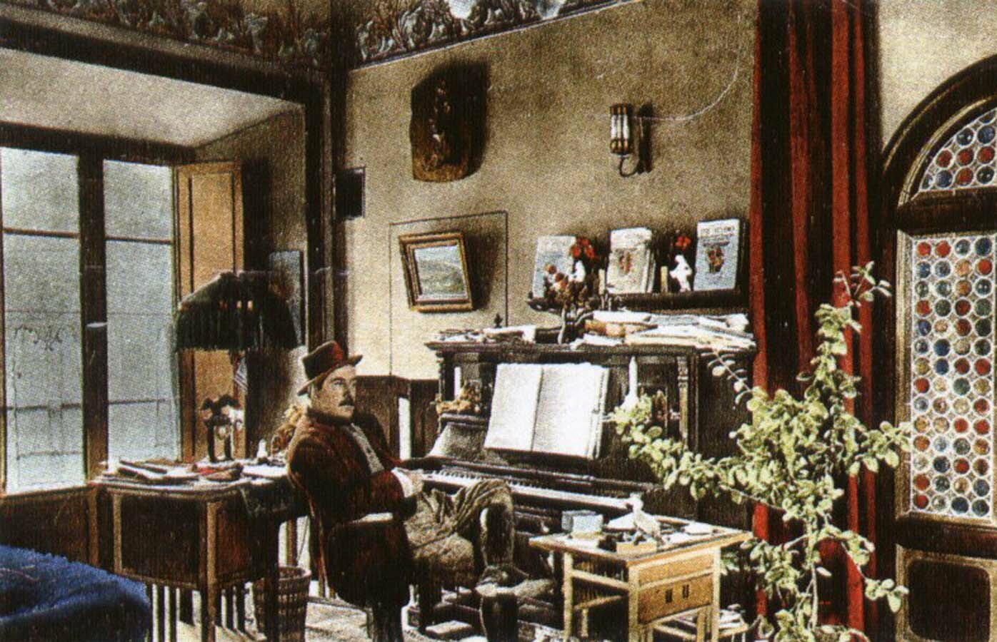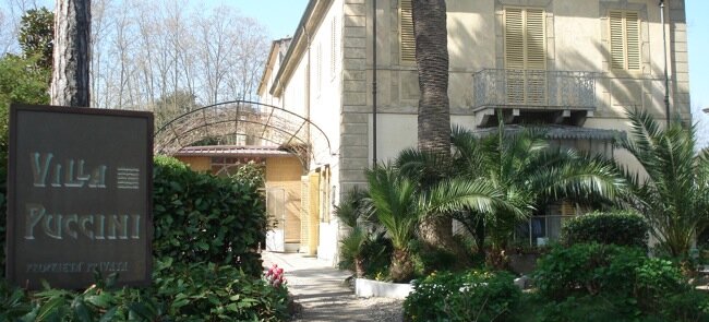 Torre del Lago Nel 1891 Giacomo Puccini prende in affitto una casa-torre sul lago di Massaciuccoli: tre semplici ambienti al piano superiore con cucina ad uso comune e una stalla al piano terra. Da allora Torre del Lago diventa un momento emblematico nella vita di Puccini, rifugio ispiratore della maggior parte delle sue opere più famose. Qui Puccini inizia una vita fatta di legami con le cose semplici, l’amore per la caccia e gli amici cacciatori, le baldorie con gli amici artisti. Dopo il successo di Manon Lescaut , Puccini acquista la casa-torre e si trasferisce nella vicina residenza del conte Grottanelli, dove rimane fino alla realizzazione di villa Puccini (primavera 1900). La villa presenta una struttura tradizionale caratterizzata dal volume cubico, dalla composizione simmetrica e da una chiara partizione delle funzioni. Il giardino – originariamente lambito dal lago –ha un impianto irregolare delineato da aiuole ornate di pietre bizzarre, da palmizi e da siepi. La casa fu equipaggiata con le ultime novità, un moderno impianto di riscaldamento a radiatori, il telefono, e Puccini mise particolare attenzione alle rifiniture. Chiese ai suoi amici, i pittori Plinio Novellini e Ferruccio Pagni, di aggiungere decorazioni che si possono ammirare ancora oggi. Mobili in stili diversi, Bugatti e Tiffany, il prezioso paravento donato al maestro dal governo giapponese e le suppellettili di diversi stili documentano il gusto eclettico del committente. In questa villa, oltre a finire la sua Manon , Puccini scrisse anche La Bohème, Tosca, parti de La Fanciulla del West, La rondine e IL trittico. Il maestro visse nella sua casa sul lago per circa 30 anni e tanto fu l’amore per il suo lago che lì volle essere seppellito, di fronte allo specchio d’acqua che lo vide più volte intento nella caccia o immerso nella sua arte. Oggi è anch’essa un museo.