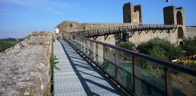 Irrinunciabile per chi viene a Monteriggioni è salire sulle mura e percorrere due tratti degli antichi camminamenti di ronda, dal quale si godono stupendi panorami sul borgo e sulle colline circostanti, in particolare sulla Montagnola Senese.