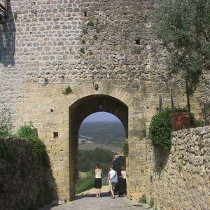 Per questo le porte sono due: la principale a levante, verso Siena, detta Porta Romea o Franca, dalla quale si entra dopo aver parcheggiato l'automobile; l'altra a ponente, che guarda verso Firenze, diametralmente opposta alla prima, detta Porta S. Giovanni o Fiorentina, dalla quale parte una strada sterrata.