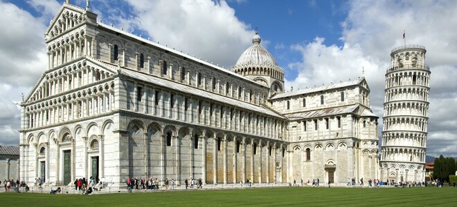 Emblema del romanico pisano, progettata dall’architetto Buscheto nel 1604, manifesta attraverso il suo splendore l’influenza di stili e culture diverse: componenti bizantini ma soprattutto islamici testimoniano la ricchezza e l’importanza raggiunti dalla Repubblica Marinara di Pisa all’epoca; i marinai pisani durante i loro viaggi in Medioriente e Nord Africa potevano ammirare bellezze caratteristiche di mondi diversi impossibili da ignorare. Fate attenzione alle colonne all’interno del Duomo, vi ricorderanno senz’altro quelle tipiche delle moschee!
