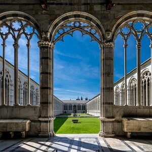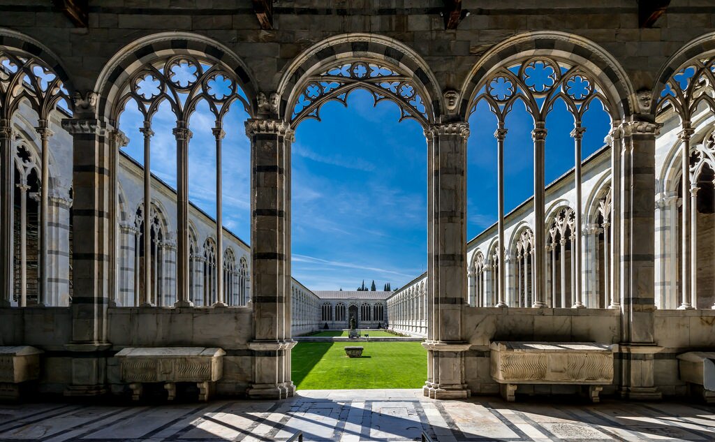 Il Campo Santo è un antico cimitero monumentale situato a nord di Piazza dei Miracoli. Iniziato nel 1277 dall’ architetto Giovanni di Simone, presenta una struttura rettangolare con all’interno un chiostro in arcate gotiche. Come ci racconta la tradizione, la struttura è stata edificata attorno a una gran quantità di Terra Santa proveniente dal luogo in cui fu crocifisso Gesù. Nel prato al centro del chiostro si conservano numerosi sarcofagi e tombe di origine romana, usate per la sepoltura di uomini prestigiosi , mentre nel pavimento del corridoio troviamo tombe di nobili pisani. Qui potrete ammirare numerose opere d’arte come: il Pulpito di Giovanni Pisano, la Lampada di Galileo Galilei, affreschi di Benozzo Gozzoli, di Buonamico Buffalmacco con il famoso “Il Trionfo della Morte” , il Tabernacolo di Della Robbia e altro ancora.