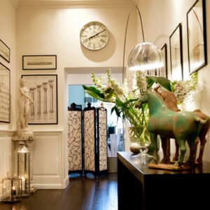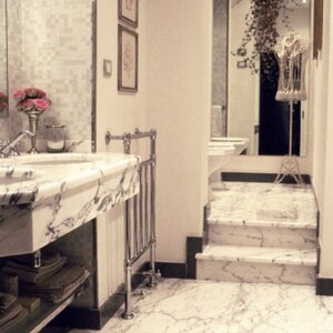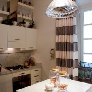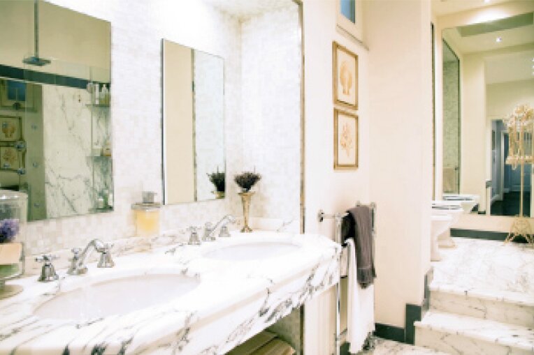 Oltre al progetto di ristrutturazione degli interni, i proprietari hanno curato personalmente il disegno di alcuni elementi di arredo: i lavabi e le pavimentazioni dei bagni in marmo, i battiscopa, le porte interne, le boiserie della sala d'ingresso, la grande vetrina della sala da pranzo, l'isola centrale della cucina.