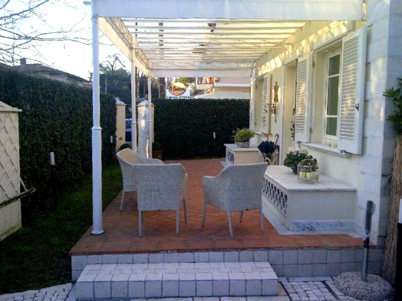 Villa trifamiliare in angolo a 300 metri dal mare di Fiumetto, a Marina di Pietrasanta. con piccolo giardino e posto auto.