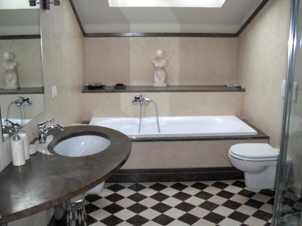L'immobile è disposto su due piani ed è composto da: sala/tinello, cucina abitabile, due camere matrimoniali, una camera a due letti, una cameretta singola, tre bagni e un bellissimo giardino con posto auto. È inoltre presente l'impianto dell'aria condizionata e la connessione internet.