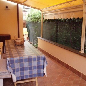 Composta da cucina abitabile, salotto, due camere matrimoniali e una camera a due letti, due bagni, seminterrato attrezzato. Offre inoltre una terrazza coperta, giardino con posto auto, aria condizionata, internet. Disponibile per affitto.