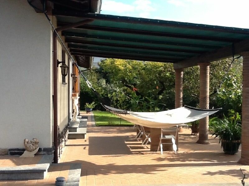 Con i suoi 2.000 m² di terreno, si estende tutta su un piano: portico con amaca, grande giardino, soggiorno con arcata, ampia cucina, studio, due camere, due bagni, ripostiglio, pompeiana e cantina.