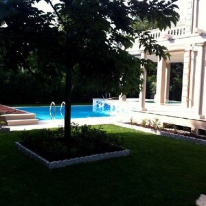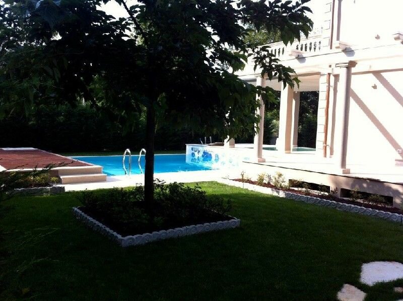 Al piano terra, un romantico portico dà sulla piscina interrata e sul giardino privato.
