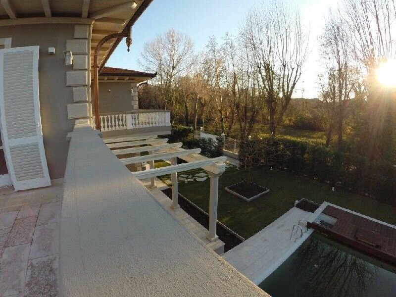 Completamente circondata dalla natura della Versilia, avvolta dai profumi del mare e della montagna, questa villa si erge su due livelli. All'ultimo, una magnifica terrazza con balaustra in stile classico affacciata su un paesaggio mozzafiato.