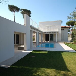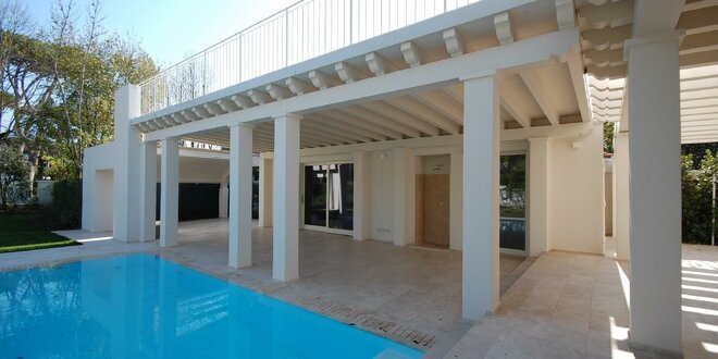 Villa Verdi ha uno stile mediterraneo contemporaneo, dove il bianco domina etereo sugli ambienti interni ed esterni. Con la piscina integrata perfettamente e circondata da un suggestivo porticato, è uno splendido patio spagnolo.