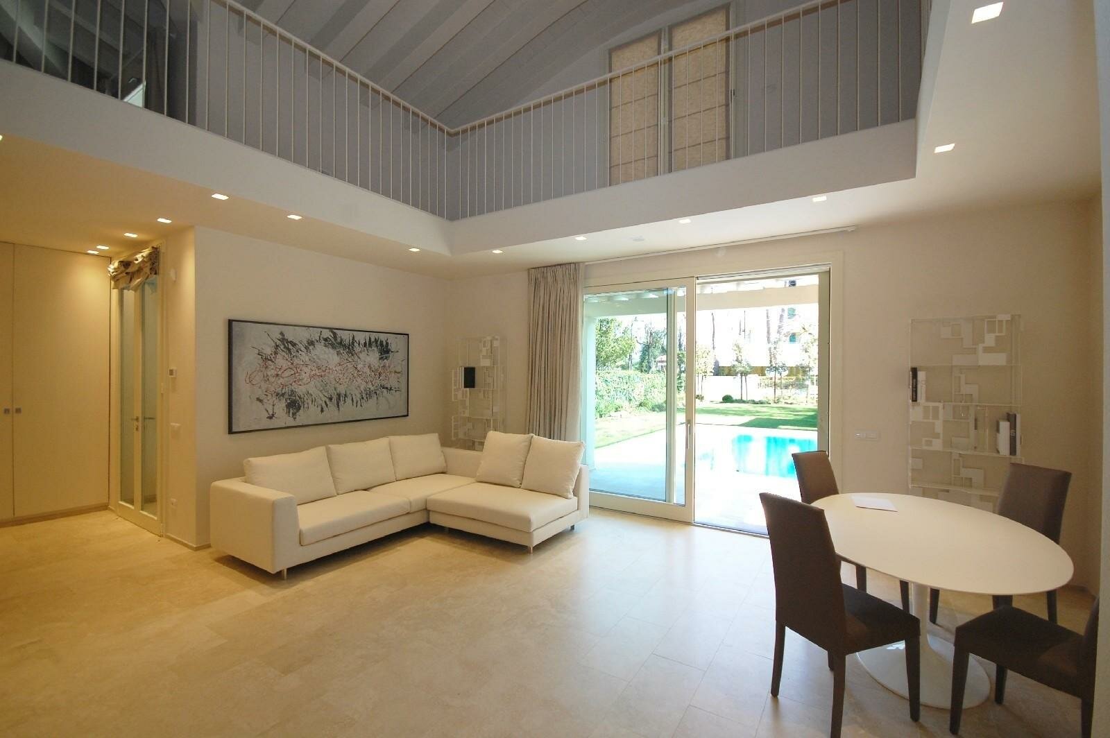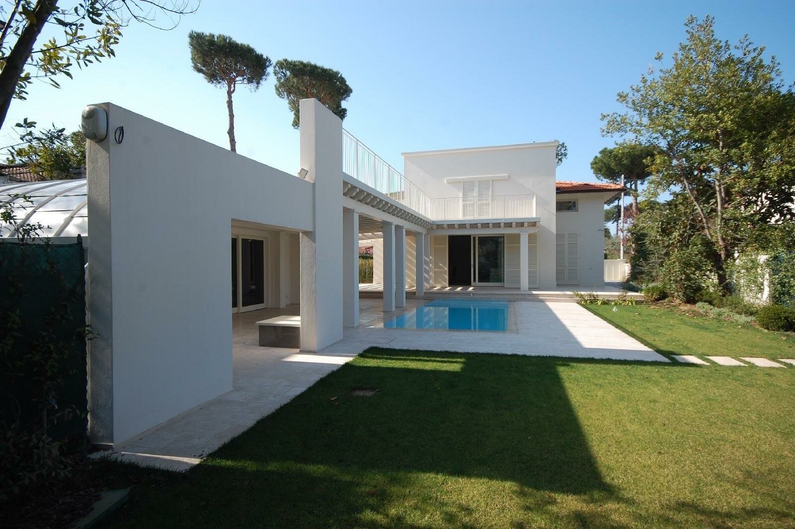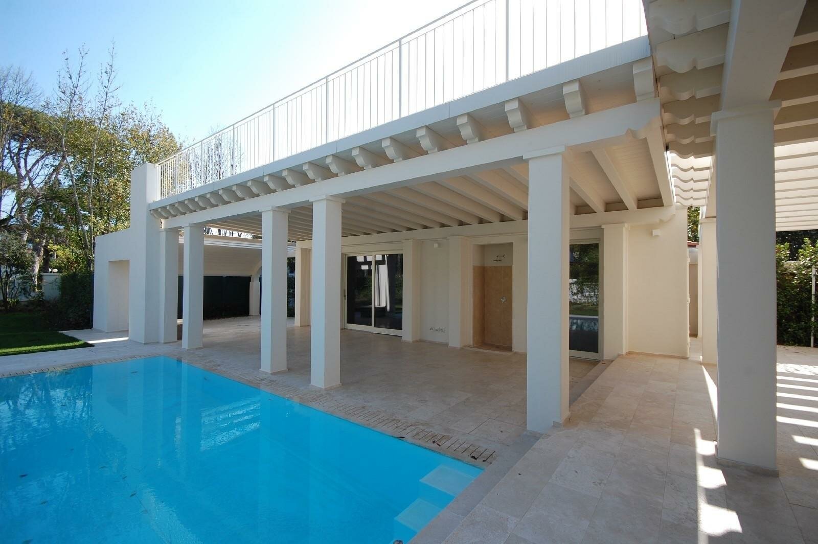 Ristrutturata pochi anni fa, con tratti architettonici originali e pregiati, offre: due posti auto interni, cinque camere, sette bagni raffinati, ampia cucina ad angolo, grande soggiorno con soppalco e immancabile vetrata sulla piscina.
