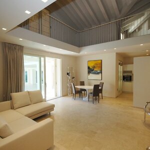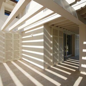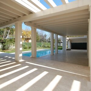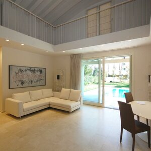 Villa Verdi has a contemporary Mediterranean style, where white ethereally dominates the interior and exterior spaces. With its perfectly integrated swimming pool surrounded by a charming portico, it is a splendid Spanish patio.