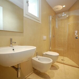 La dependance esterna, adiacente alla piscina, è adibita a palestra, con bagno e doccia di servizio alla piscina.
