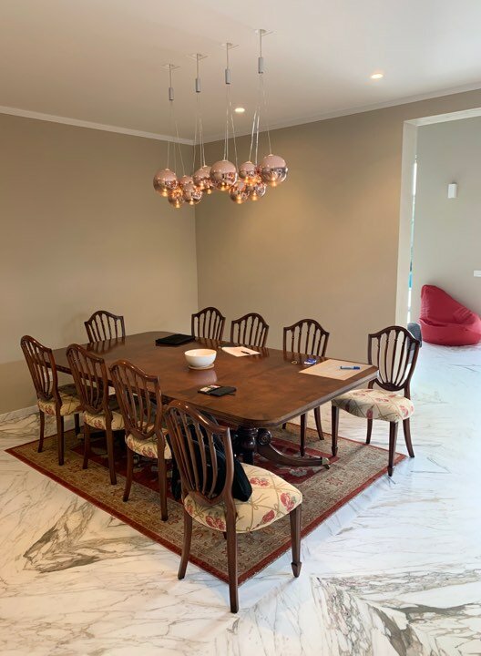 Inserita in un contesto residenziale, con arredo moderno e ricercato e finiture di pregio, è composta da: sei camere, sette bagni, ampia cucina a isola, soggiorno con soppalco e accesso alla piscina tramite le porte-finestre, sala riunioni, mansarda abitabile e veranda con pavimento in marmo. Offre anche posti auto, aria condizionata, wi-fi e allarme.