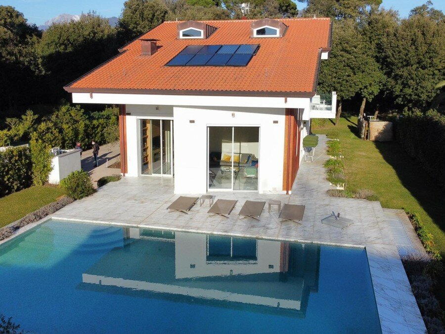 Villa Kent is immersed in the green of a 3,000 m² park. Located in the Tonfano area of Marina di Pietrasanta, about 300 metres from the sea, it is just a short walk from the Versiliana pinewood, from the historic bar Pasticceria Caffè Versilia and from the charming pier on the Tyrrhenian Sea from which to admire romantic sunsets.