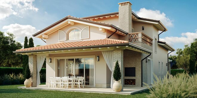 Circa 150 mq di superficie e circa 800 mq di lotto.