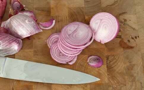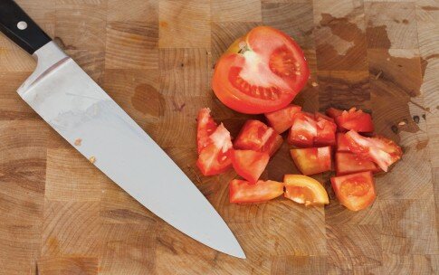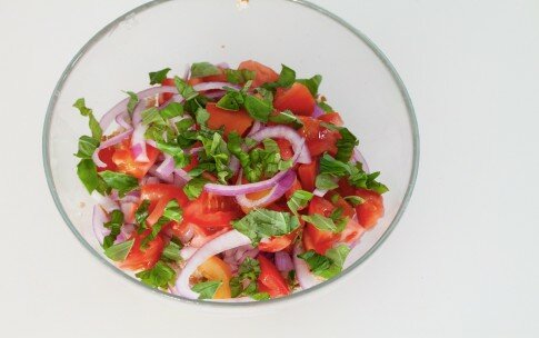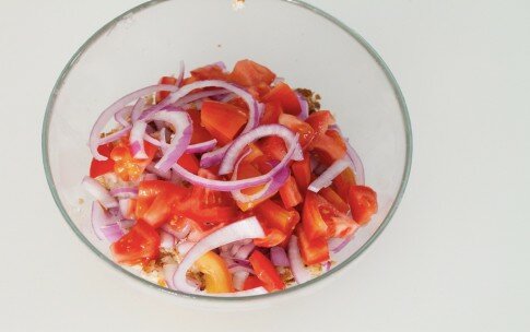 - Aggiungete la cipolla ben scolata dall'acqua. Unite anche i pomodori.