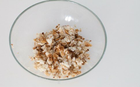 - Tagliate il pomodoro a dadini. Strizzate molto bene il pane con le mani e trasferitelo in una ciotola. Sempre con le mani riducetelo in briciole fini.