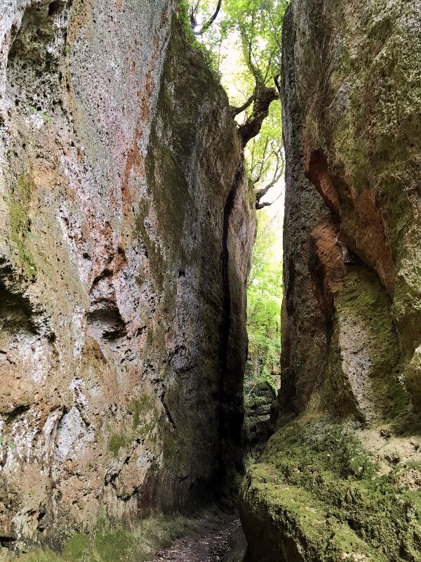 Dopo una passeggiata nel quartiere ebraico di Sorano, tra botteghe d’artigiani e palazzi ricoperti di edera, ci si immerge nel bosco e nella natura più autentica andando verso le vie cave di San Rocco. Le vie cave sono camminamenti scavati nel tufo che, un tempo, servivano agli etruschi come via di comunicazione; ma erano anche dei percorsi riservati ai riti religiosi che portavano alla necropoli.