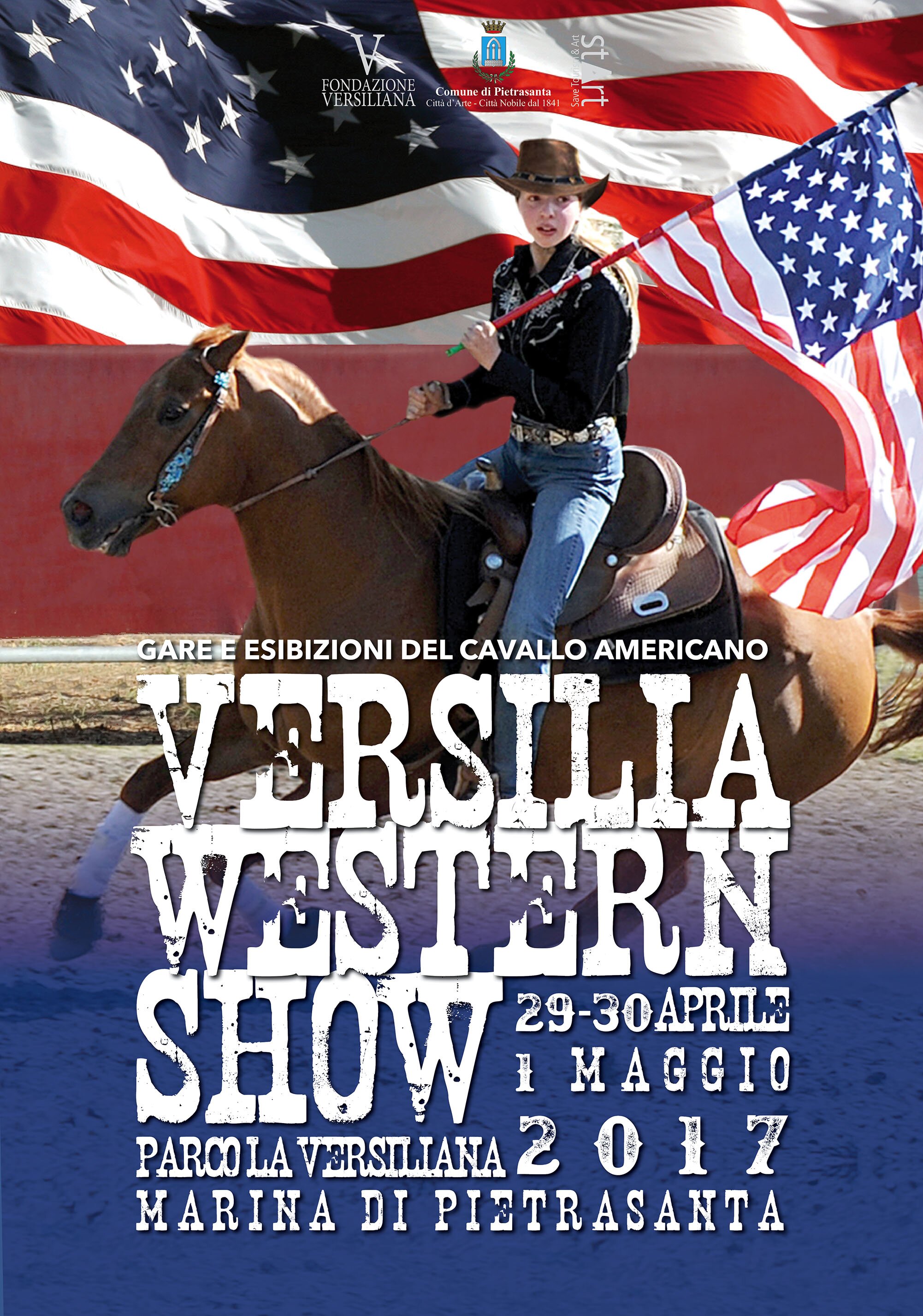 Cavalli e cowboy per il Western Show. I cavalli americani più veloci al mondo sul quarto di miglio e i più spericolati cavalieri del continente sono i protagonisti della 3 giorni, in progamma sabato 29, domenica 30 e lunedì 1 maggio, dedicata alle discipline equestri ispirate all'epopea americana. Uno spettacolo che va in scena nel ranch del Parco della Versiliana, a Marina di Pietrasanta (LU). Gare no stop, abilità, esibizioni e spettacoli, anche per i bambini, sono gli elementi di questo grande evento dedicato agli appassionati di equitazione e ippica, promosso dal comune di Pietrasanta e Fondazione Versiliana.